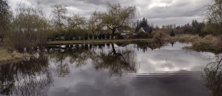 The pond at our Shed was still and quiet, ...except for the Canada Geese, the three huge turtles and the complaining frogs.