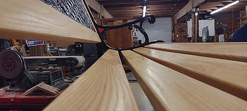 Today, John Leigh is our 'sand-man'. Our first bench is just paint and assembly away from completion.