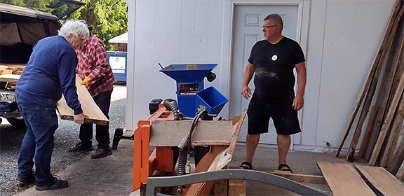 Picking & sifting through a trailer-load of wood that was destined for the transfer station, our Men's Shed group sorted out needed firewood and good project wood. Thanks to the property owner for putting up with a mess for a few days.