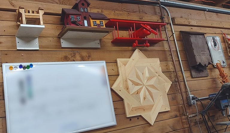Here we see a small collection of 'Bruce Built' adorning our Shed wall. Soon, we will be needing more walls.