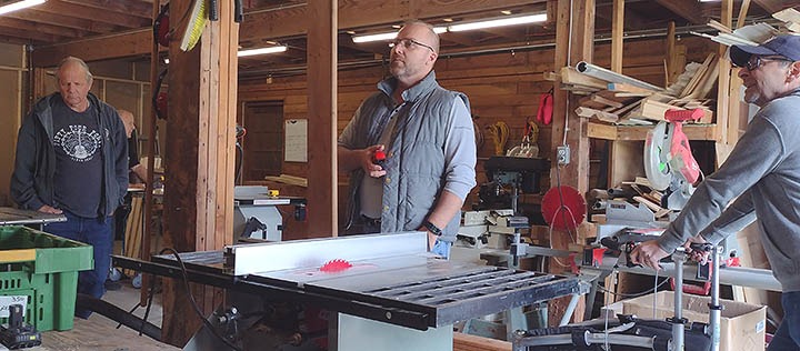 With no deadlines, woodworking never becomes 'work'. Here we see Don, Greg and Bill wondering how much wood a woodchuck could chuck if........